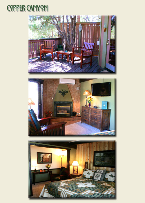 Inviting copper fireplace, sitting area, Ralph Lauren "America" lodge decor